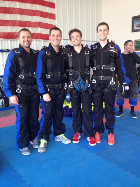 Following that group our names were called to head into the briefing room. There we were all paired with our guides that we would be entrusting our lives to. My guides name was Stu. He was quiet the character, I asked him how long he has been jumping and he responded quickly, “this is my second weekend, I still haven’t lost anyone yet.” I could tell that he was indeed joking. Turns out that Stu was a paratrooper in the military. This gave me even more confidence. As I put of the jumpsuit and he harnessed me up he went through some basic bullet points and procedures that we would have to follow. Basically just telling me where my hands need to go and what form we would use upon our exit.