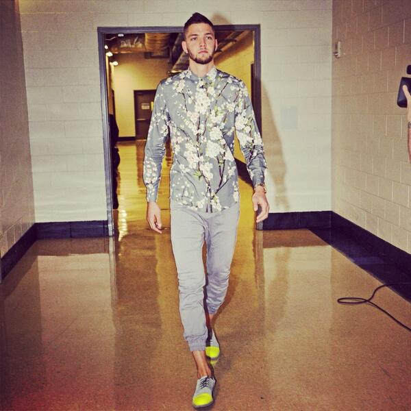 Chandler Parsons is a rising star in the NBA. Not only does Chandler works hard on the court, recently rewarded with a 46 million dollar contract. He also loves to push the envelope with his clothing choices. What does Chandler’s ensemble in the photo say about him? Personally I like the creativity and confidence. He is wearing a floral print shirt paired with jogger/capri pants and bright yellow saddle shoes (Del Toro). Sometimes you have to be confident and bold to wear certain things. Chandler is a trailblazer in the way he pushes the line with some of his fashion choices. I will also partially credit Chandler with my obsession with Stance Socks. He is coming out with his own design that I will most certainly be purchasing!